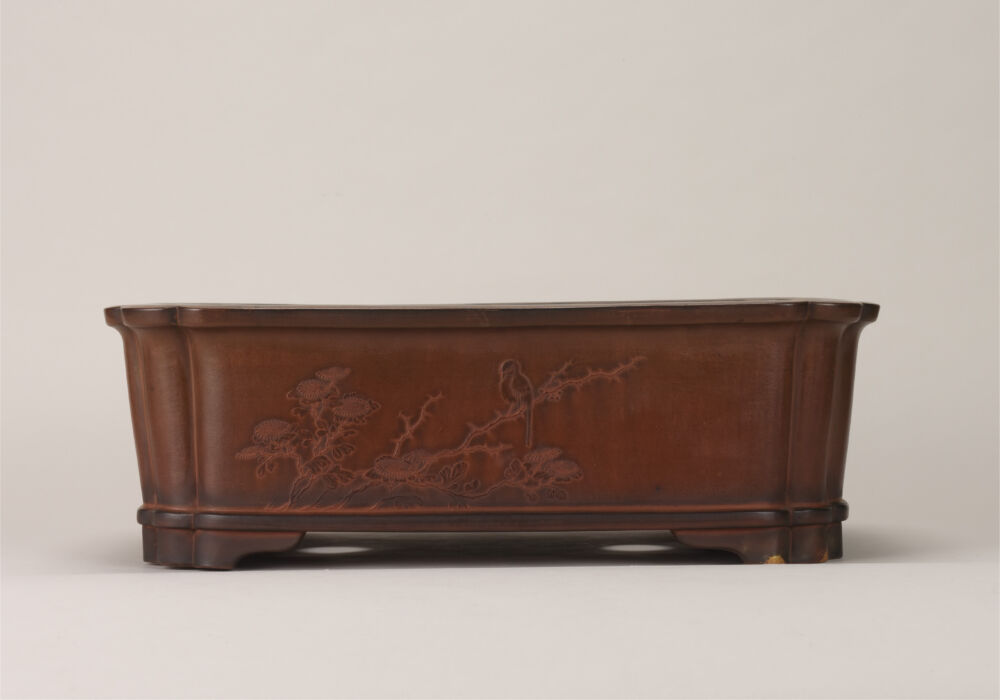 - Red-Clay Pot with Bird and Chrysanthemum Design