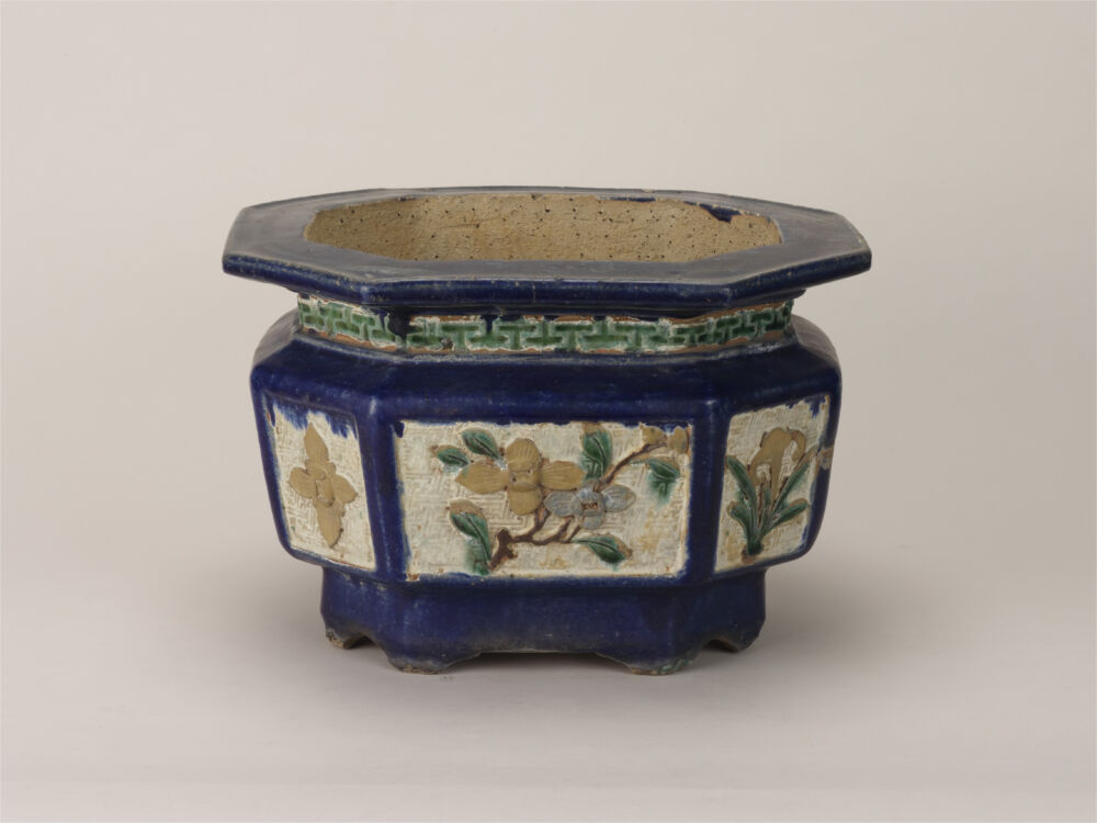 About Bonsai Current exhibit Bonsai Bonsai PotStoneTablePaintingsHistory and Folklore Title: Canton Pot with Carved Design in Cobalt-Blue Glaze Artist, etc: Unknown (China) Date: Size: D:33cm x W:37cm x H:24cm Number: B-114