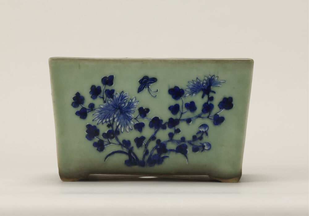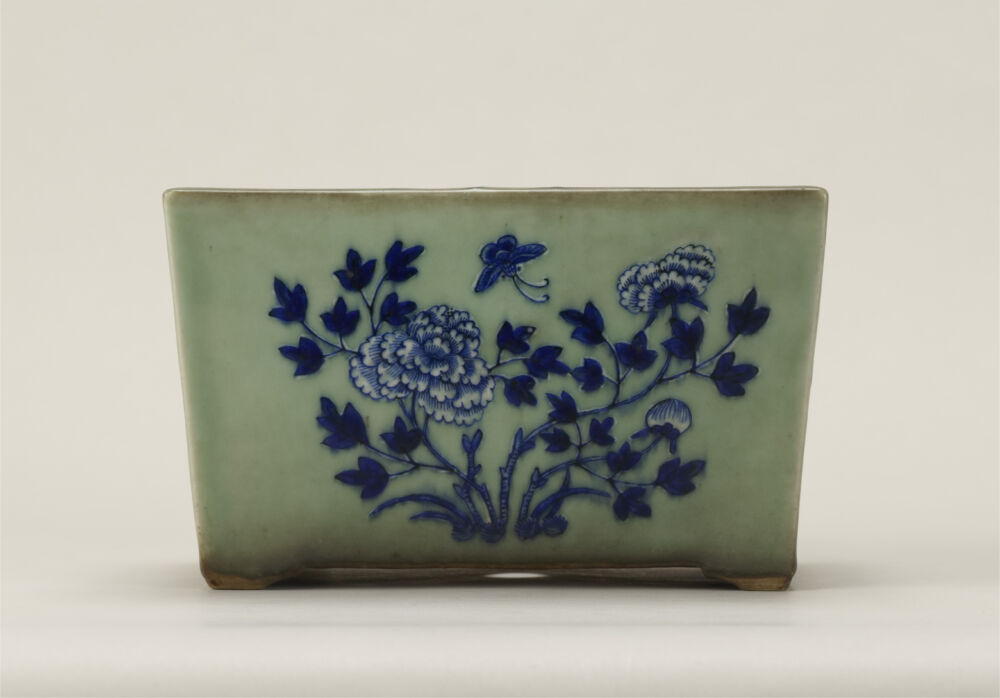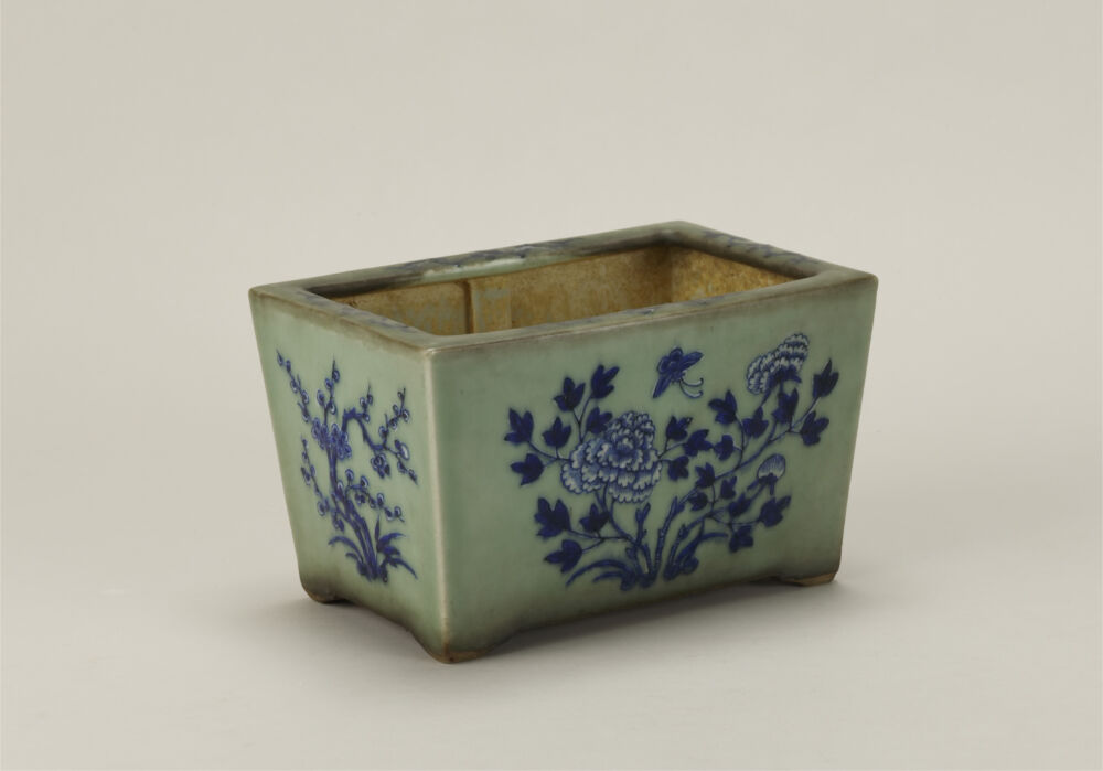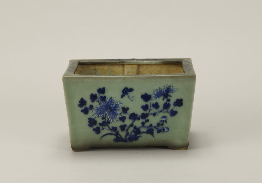 盆栽について 盆栽の展示一覧 盆栽 盆器水石卓絵画資料等歴史・民俗資料 名称 青磁染付花鳥文長方鉢 作者等 不詳(中国) 制作年代 寸法 奥:16cm x 幅:23.5cm x 高:14.2cm 資料番号 B-010