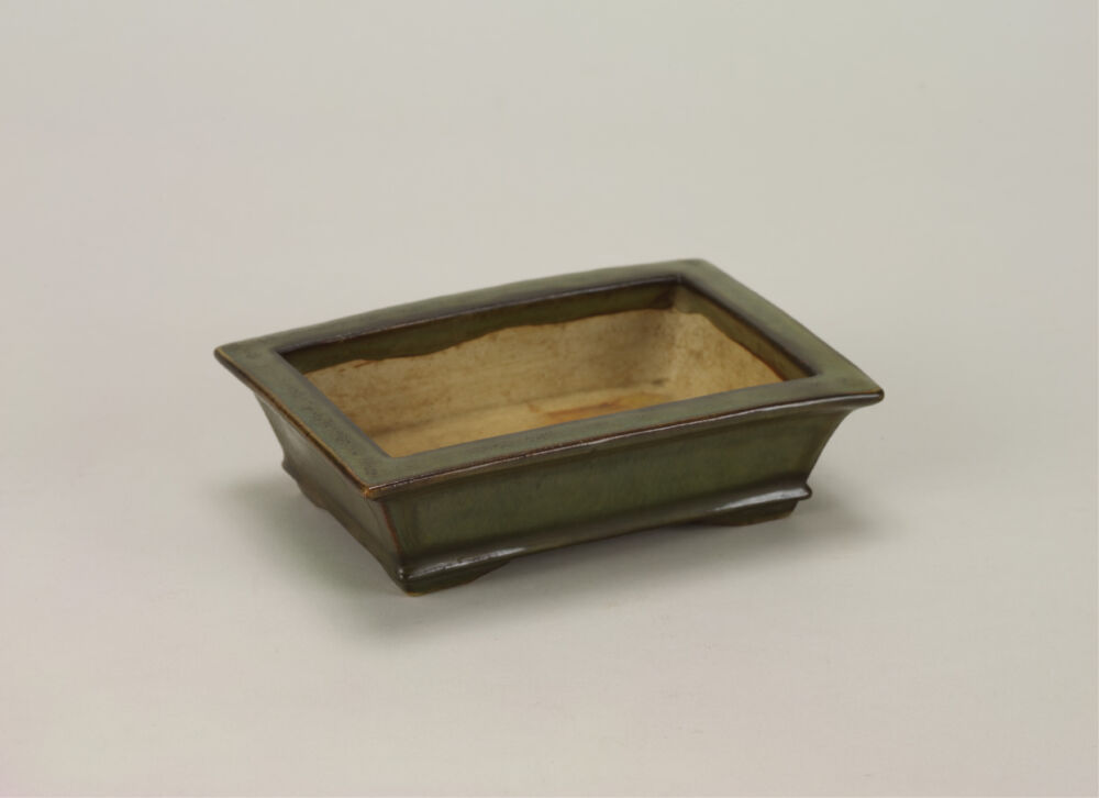 盆栽について 盆栽の展示一覧 盆栽 盆器水石卓絵画資料等歴史・民俗資料 名称 緑釉長方鉢 作者等 井上良斉 制作年代 寸法 奥:10.2cm x 幅:14.5cm x 高:4.2cm 資料番号 B-235