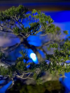 注目ポイント:盆栽が浮き上がっているように見え、幻想的。