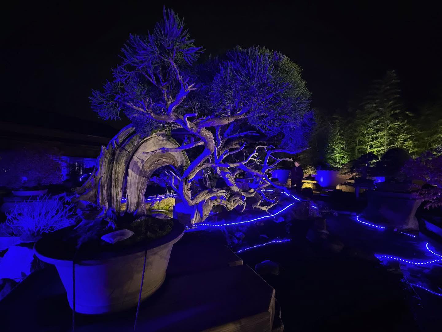 庭園内にてライトアップされた 「真柏(A-124)推定樹齢100年」を使用した、特別コンテンツを実施しました。