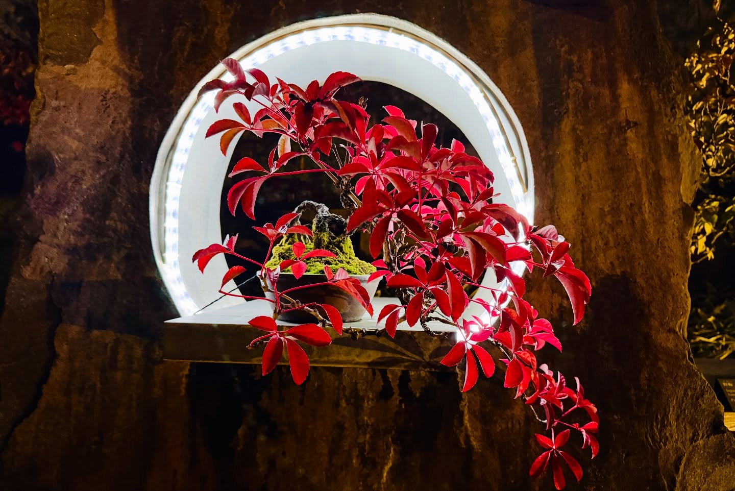 注目ポイント:盆栽が浮き上がっているように見え、幻想的。