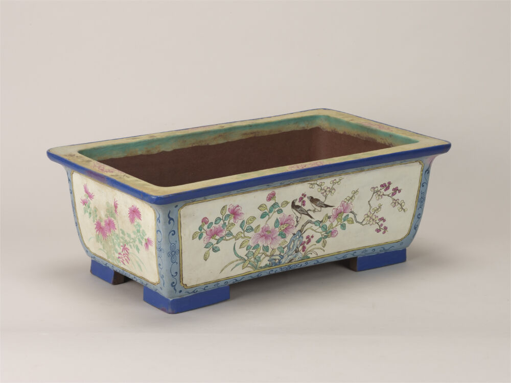 關於盆景 盆景展覽清單 盆栽 盆景鍋水石桌子繪畫材料等歷史與民俗 名稱 絵紫泥花鳥文長方鉢 作者等 不詳(中国) 生產年齡 尺寸 深:31.8cm x 寬:52.5cm x 高:18.6cm 資料編號 B-098
