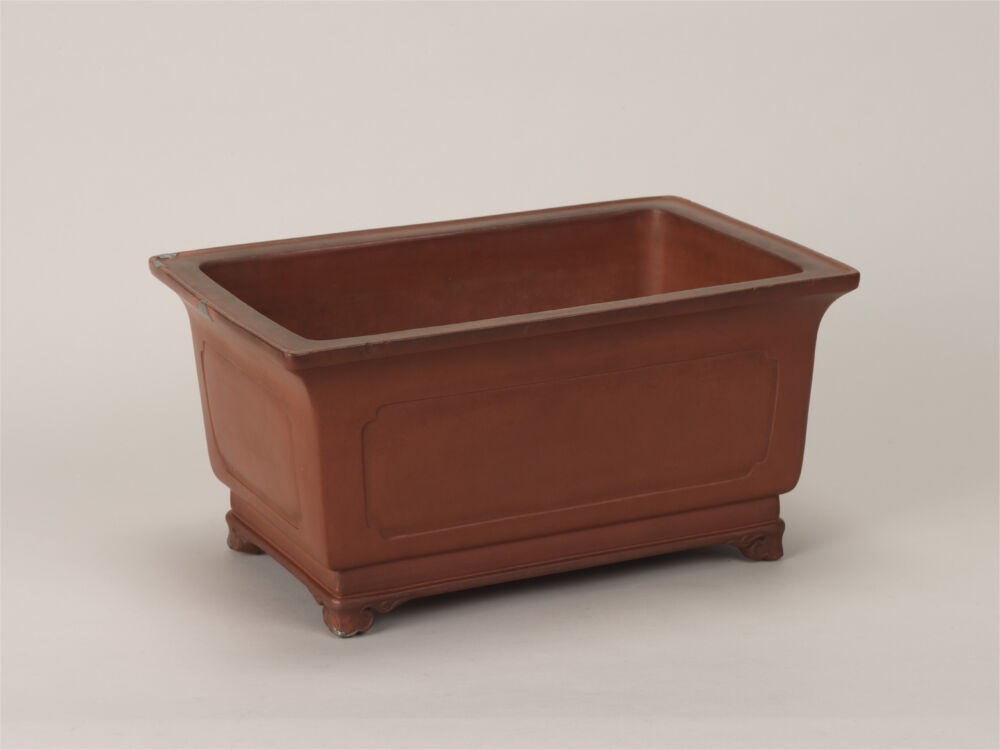 關於盆景 盆景展覽清單 盆栽 盆景鍋水石桌子繪畫材料等歷史與民俗 名稱 柿泥額入長方鉢 作者等 不詳(中国) 生產年齡 尺寸 深:21.8cm x 寬:33.2cm x 高:17.5cm 資料編號 B-149