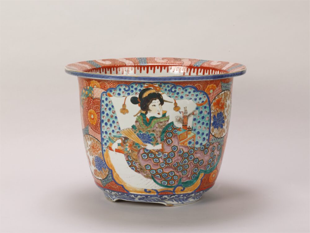 關於盆景 盆景展覽清單 盆栽 盆景鍋水石桌子繪畫材料等歷史與民俗 名稱 色絵武者花魁文丸鉢 作者等 伊万里焼 生產年齡 尺寸 深:44.1cm x 寬:44.1cm x 高:31.9cm 資料編號 B-181
