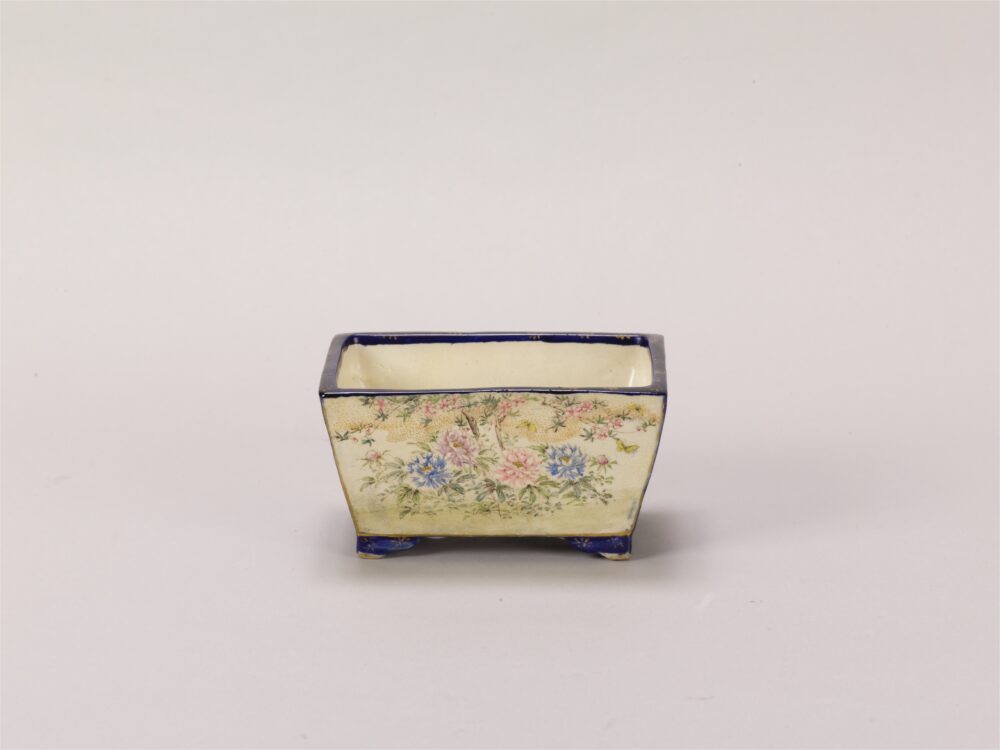 關於盆景 盆景展覽清單 盆栽 盆景鍋水石桌子繪畫材料等歷史與民俗 名稱 瑠璃釉色絵人物花鳥図長方鉢 作者等 楠部 生產年齡 尺寸 深:10cm x 寬:14.2cm x 高:7cm 資料編號 B-206