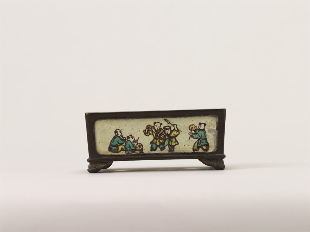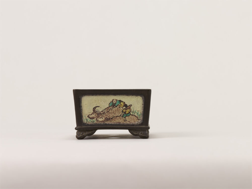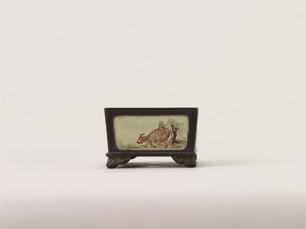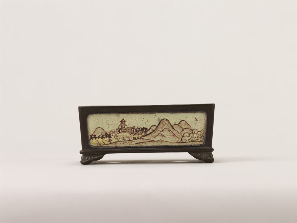關於盆景 盆景展覽清單 盆栽 盆景鍋水石桌子繪畫材料等歷史與民俗 名稱 烏泥絵入長方鉢 作者等 平安香翁(平安香山) 生產年齡 尺寸 深:8.8cm x 寬:12.8cm x 高:5.5cm 資料編號 B-287